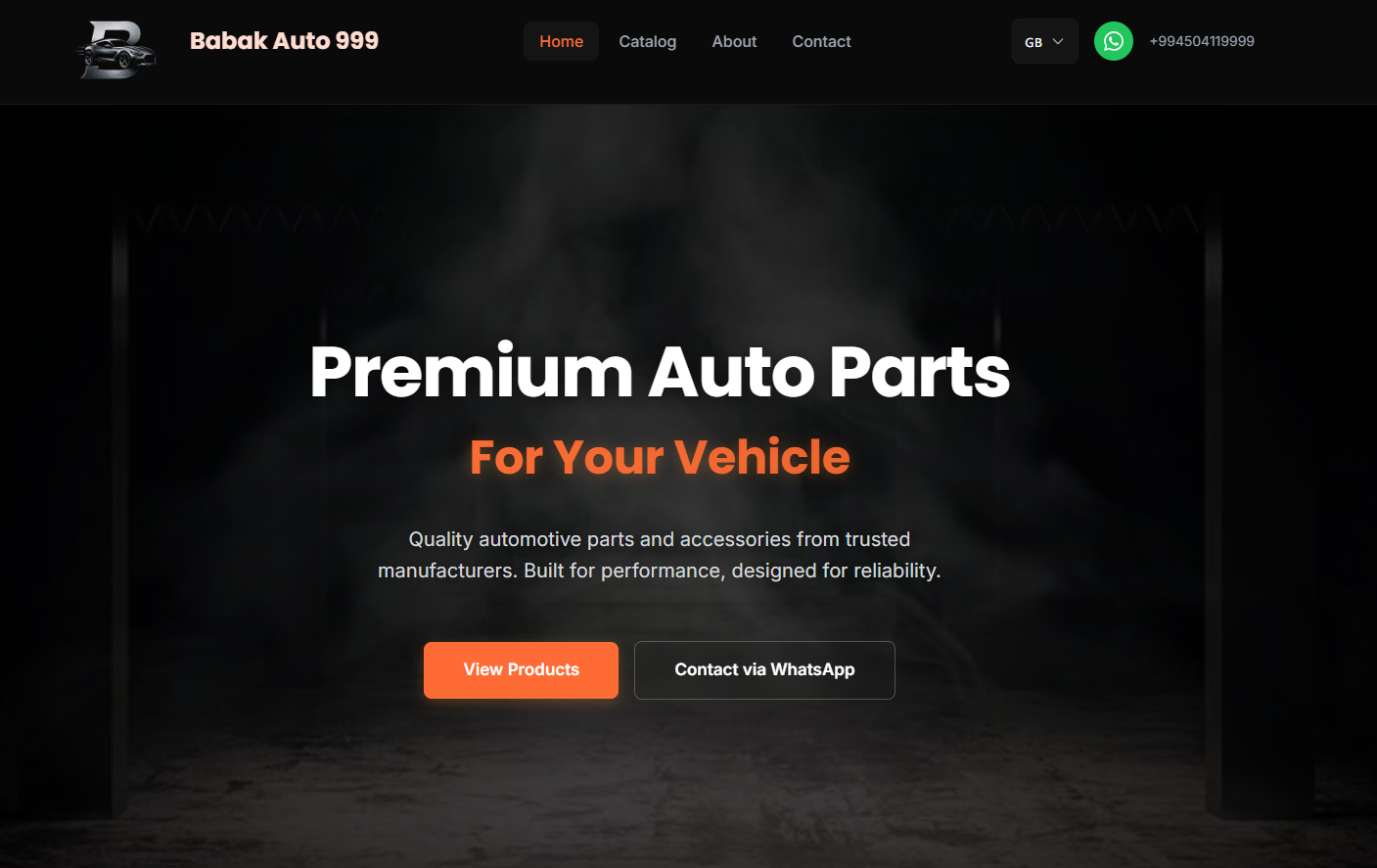 Quality auto parts and accessories e-commerce. Product catalog, cart, responsive design.