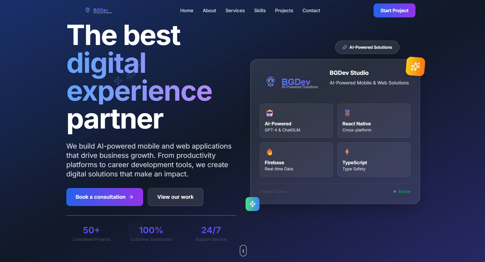 - ▸Delivering production-ready web and mobile applications for clients worldwide.