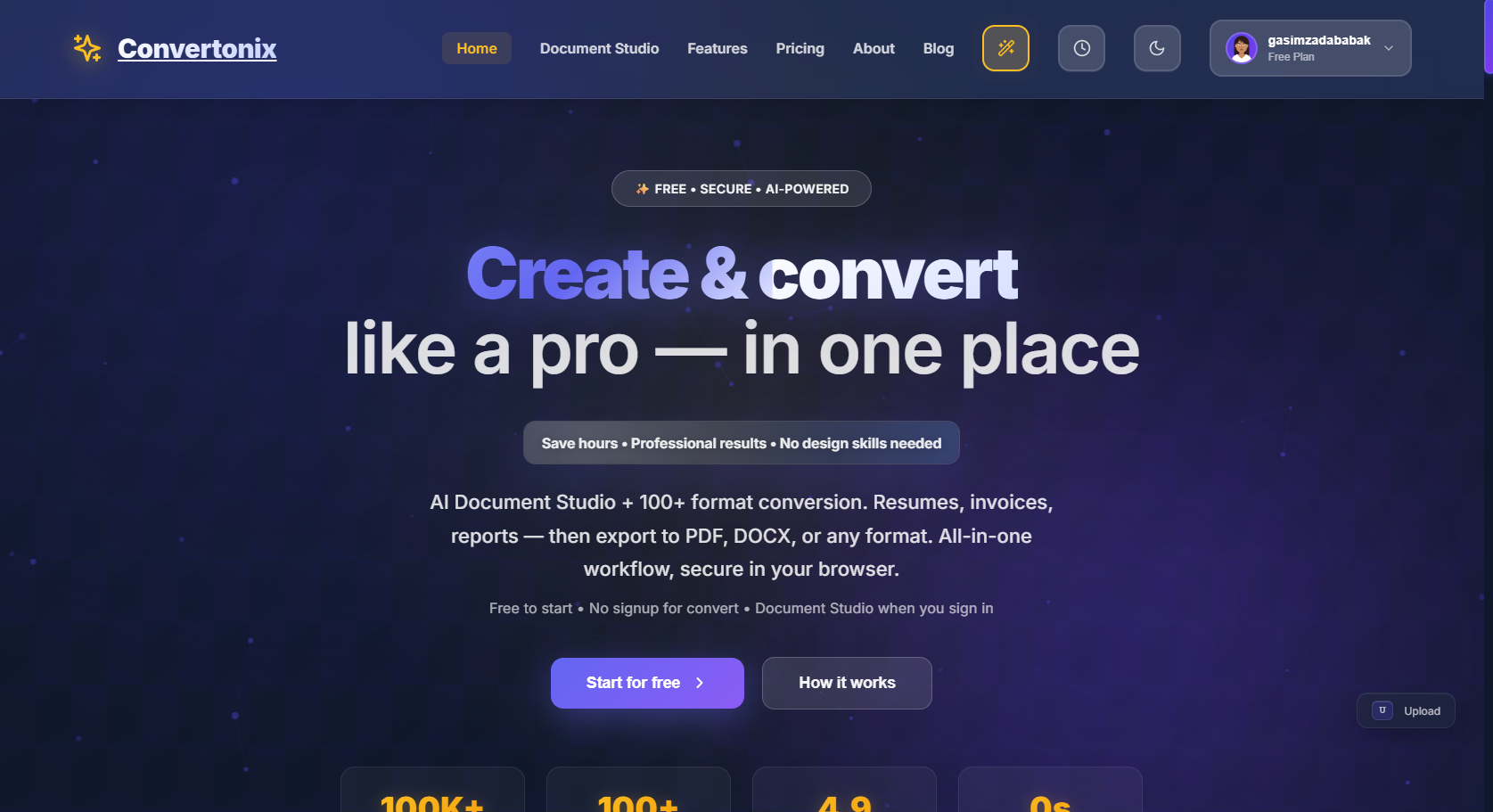 AI-powered file converter — convert 100+ formats instantly. PDF, Word, images, videos.